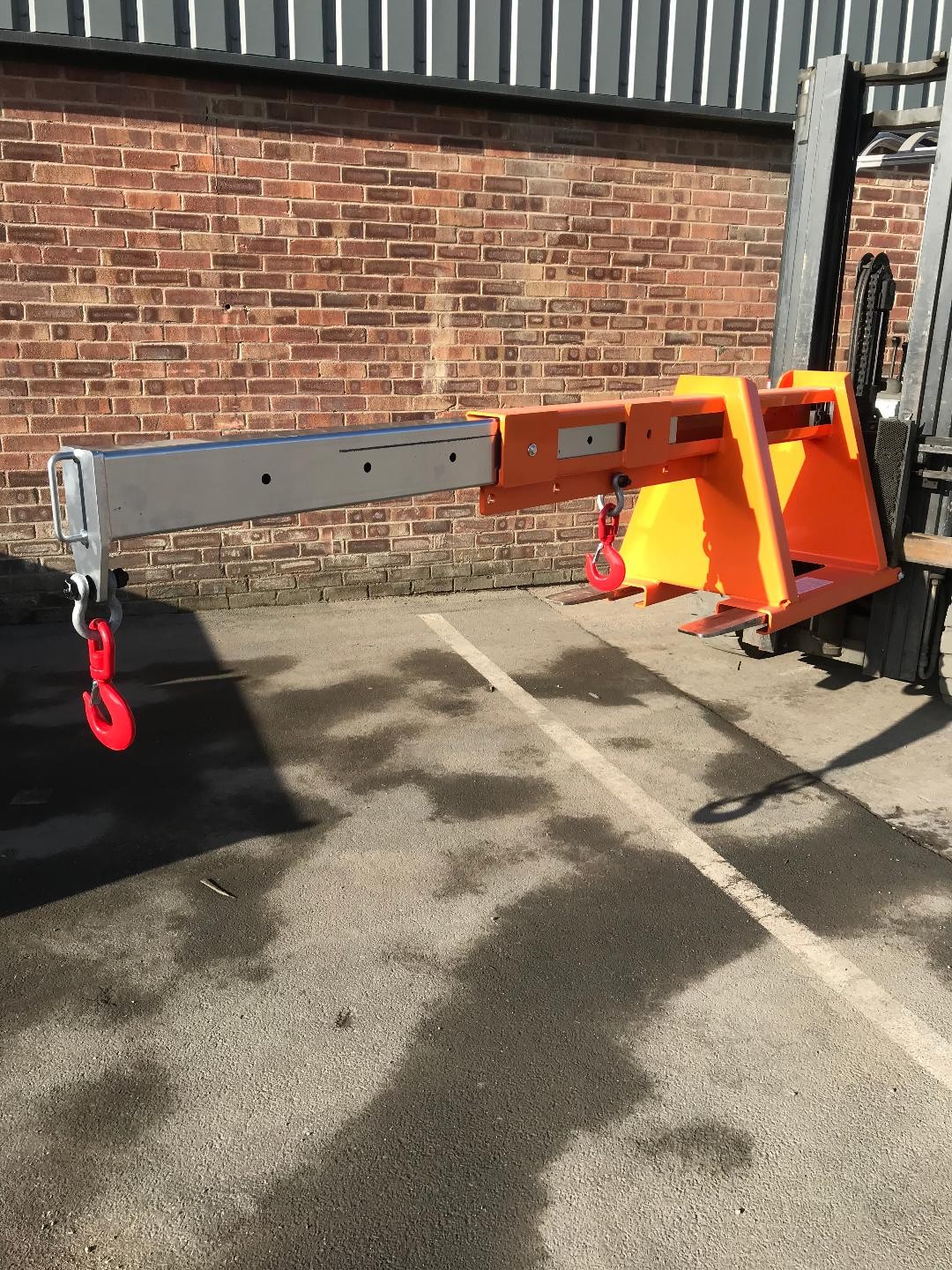 The Fork Mounted Extending Jib allows the movement of long and awkward loads from inaccessible locations with up to 9 different lifting positions and with the added benefit of two hooks and two shackles so as to ‘cradle’ your load.
