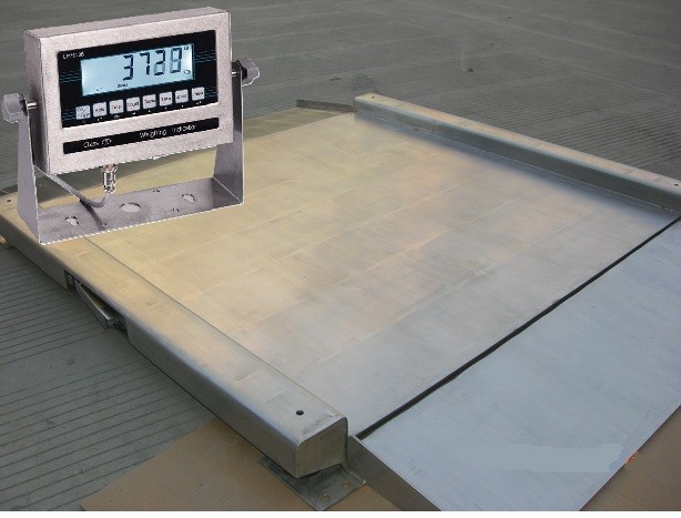 - Walk/drive through stainless steel low profile scale with side protection safety bars and 2 ramps