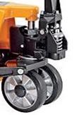- Tandem Polyurethane load Rollers which help spread the load on the floor surface and thus reduce's ground contact loading by 50%. This makes it easier to move heavier loads on the pallet truck resulting in less effort / strain for the operator